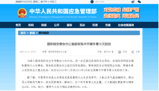 行业要闻丨国务院安委会办公室部署集中开展冬春火灾防控...